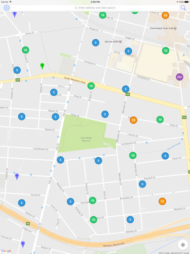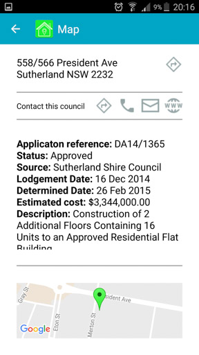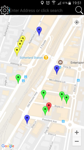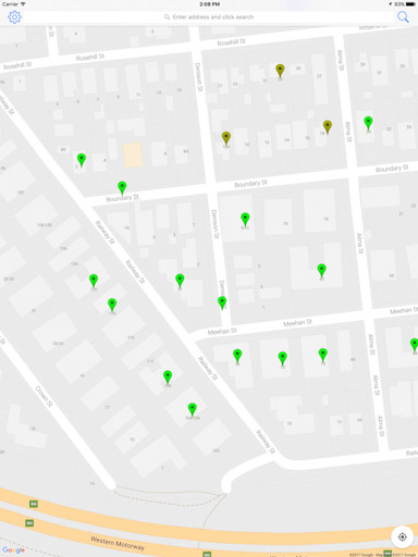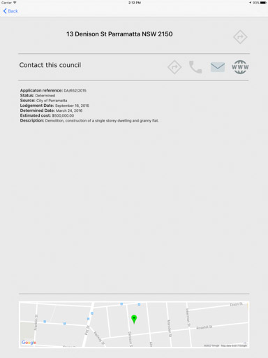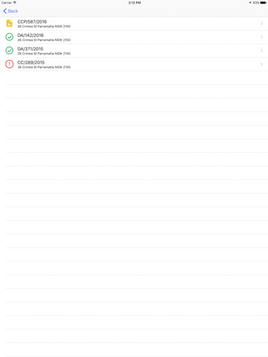 iOS - Colour markers are indicating the approval status (Ultimate edition) Android - Colour markers are indicating the approval status (Ultimate edition) iOS - A detail list of applications at that location Android - A detail list of applications at that location iOS - Detail information about this application and quick buttons Android - Detail information about this application and quick buttons iOS - A cluster of markers, double click to zoom in
